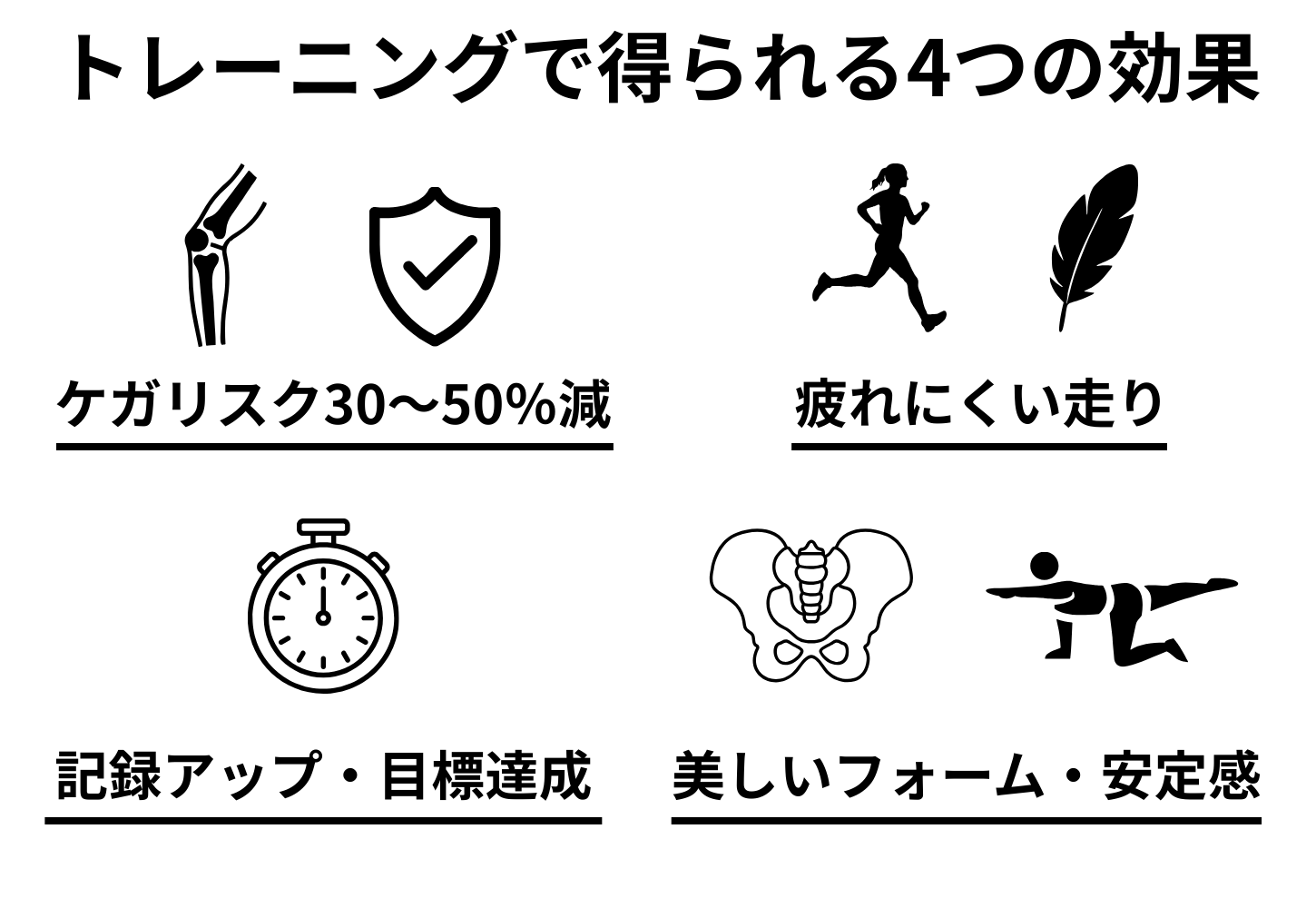 正しいトレーニングを取り入れると、ランニングに必要な身体機能が整い、走りの効率やケガ予防に大きな違いが生まれます。